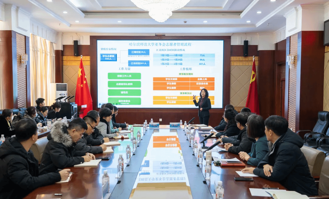 为贯彻落实全省服务保障亚冬会工作会议精神,切实做好我校亚冬会志愿者在校及赛会服务期间安全管理工作,全领域、全时段、立体化推进志愿者精细化管理,压实安全管理责任,1月6日上午,学校在行知楼0107会议室召开第九届亚冬会志愿者安全管理工作会议。校长蒋鲲出席会议并讲话,党委副书记、工会主席郭砾,党委常委、副校长尹剑锋,党委常委、副校长徐国峰,党委常委、宣传部(党委教师工作部)部长张艳君,学校党委办公室、校长办公室、学生工作部(学生处、武装部)、团委、教务处、保卫处、后勤管理处、产业处、国际教育学院主要负责同志,各学院党委副书记,全体亚冬会志愿者教师参加会议。会议由郭砾主持。