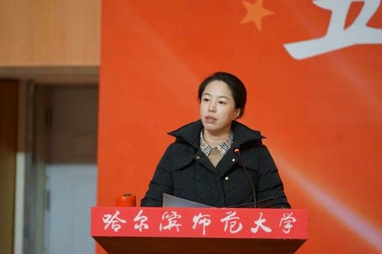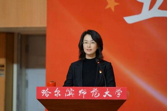 郭砾以《集五方之帜铸信仰之基——来自祖国“四极一心”的力量》为题向现场师生授课。授课过程中,她介绍了我校获赠的分别在“天安门广场”“东方第一哨”“南海第一哨”“西陲第一哨”“北极哨所”升起的五面国旗的来历,讲述了五面国旗蕴含的感人事迹,与青年学子共话“强国建设、青年何为”的时代命题。她勉励青年学子成长为“心中有国,眼里有光”的新时代有为青年,并就更好地激励青年学子爱党爱国,让青春在强国建设、民族复兴新征程上绽放光彩,提出三点希望:一是心怀国之大者,筑牢“对党忠诚”的政治品格,要牢固树立中国特色社会主义共同理想和共产主义的崇高理想,始终忠于党、忠于人民、忠于祖国;二是肩挑时代之责,锤炼“勤学笃行”的过硬本领,要努力提高与时代发展和事业要求相适应的能力和素质,将青春投身教育强国、科技强国、人才强国建设的宏伟征程中;三是情系龙江热土,践行“强国有我”的使命担当,要用个人的躬耕求索带动社会的永久奋斗,把家国情怀转化为奋斗动力,在强国建设、民族复兴的时代征程中书写青春华章。