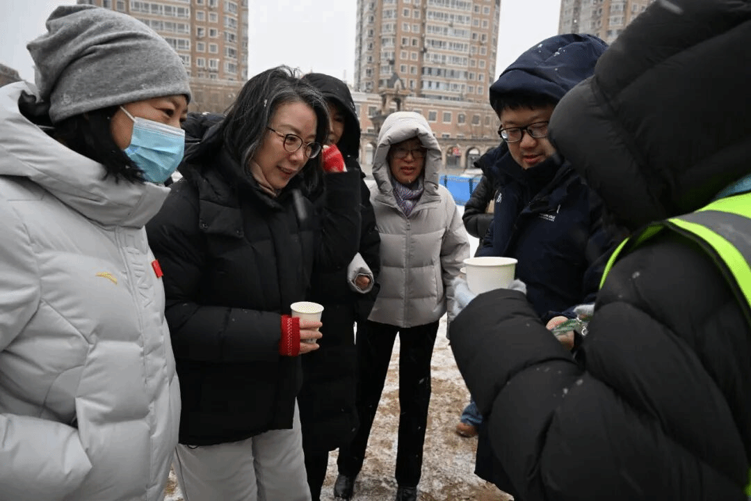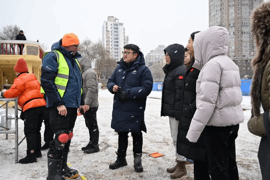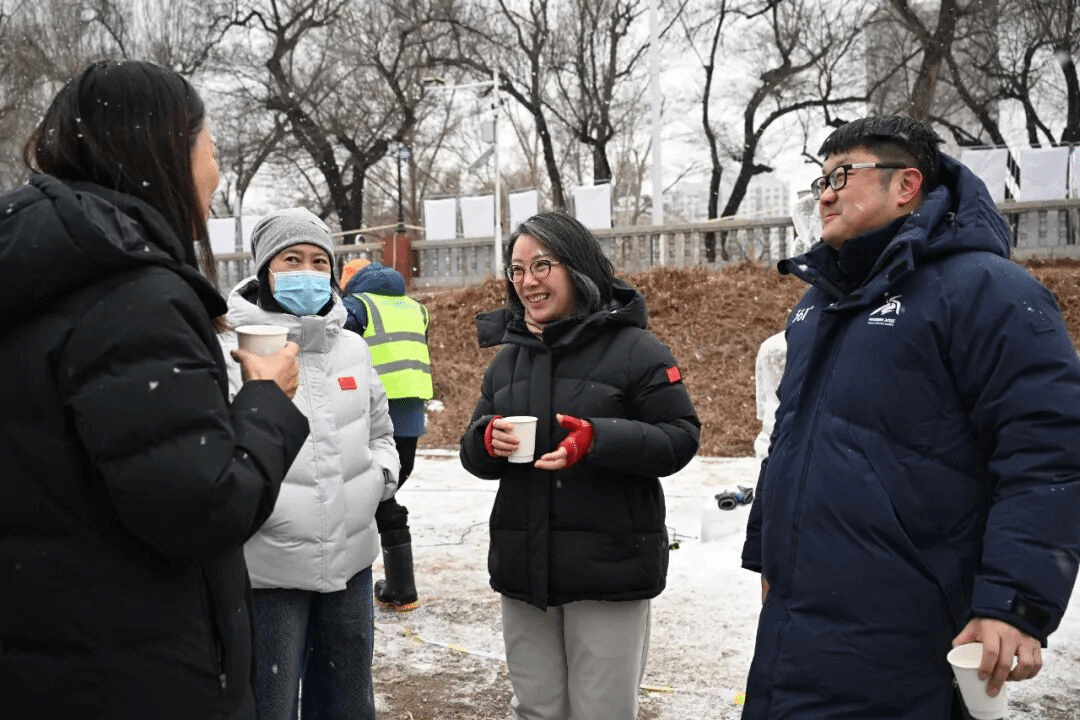 参观调研过程中,郭砾与我校参展师生团队、国际艺术家亲切交流。她详细了解了作品设计理念与进展情况,并对创作者们不畏严寒、认真创作的专业态度和敬业热忱表示赞扬。郭砾指出,长期以来,学校深耕冰雪文化与艺术设计领域,与南岗区多次对接合作,取得了丰硕成果。此次国际冰雪创意设计巡回展,既是学校推动冰雪创意产业建设、助推地方冰雪文旅发展的重要实践,也是深化国际艺术交流、提升学生全球视野的优质平台。她鼓励师生们要珍惜与国际顶尖艺术家携手创作的机会,在交流中激发灵感、在实践中锤炼技艺,共同为哈尔滨打造具有国际影响力的冰雪文化名片贡献力量。