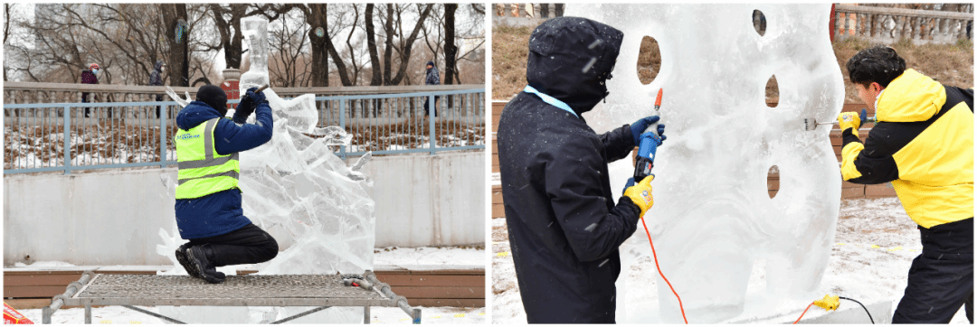 本次展览,我校创意设计产业园区师生团队独立创作了两件作品,雕塑系专业学生作为志愿者参与全程,配合完成了冰料搬运、协助制作、场地维护、翻译引导等工作,用艺术创作与真诚服务为龙江的冬日注入青春活力与浪漫气息。