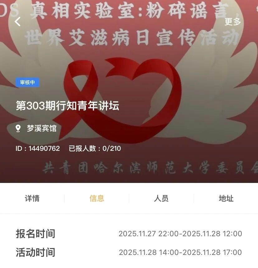 为深入贯彻落实“健康中国”战略,积极响应国家艾滋病防治宣传教育号召,进一步提升我校青年学生对HIV/AIDS的科学认知与自我防护能力,消除歧视与误解,筑牢校园健康防线,哈尔滨师范大学特别推出第303期行知青年讲坛“知艾防艾,守护青春”主题讲座。