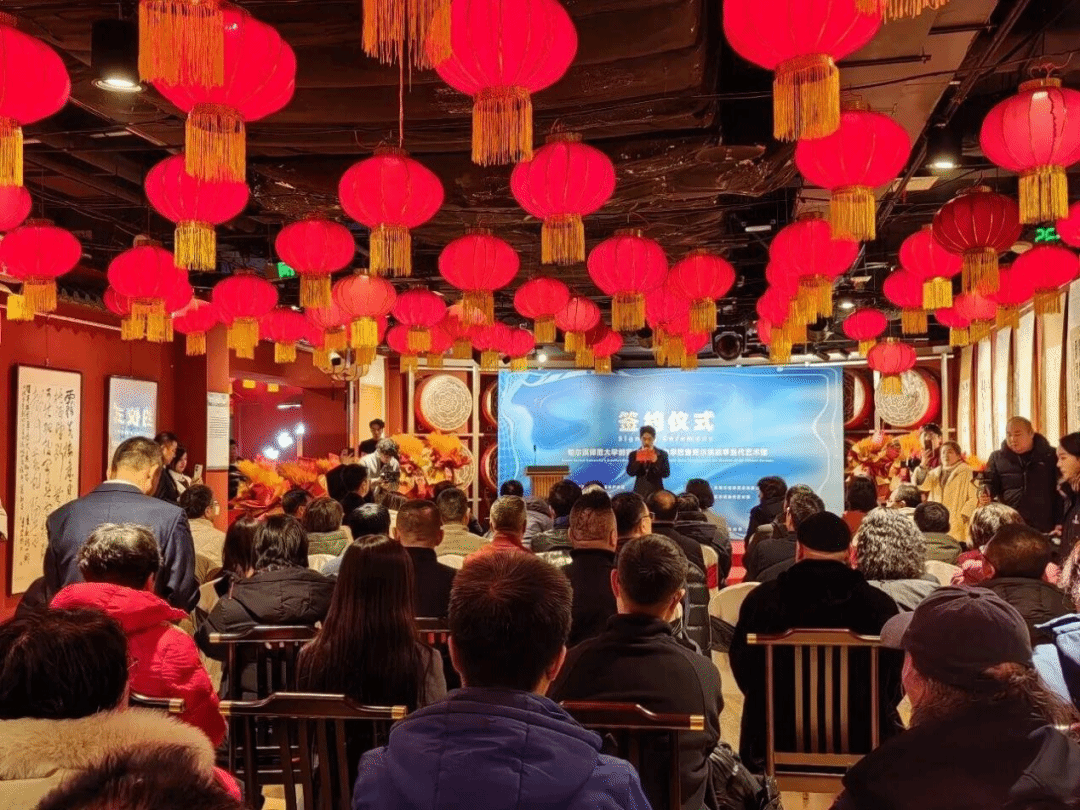1月16日下午,我校创意市集入驻中华巴洛克尔滨故事当代艺术馆签约仪式暨揭牌仪式在中华巴洛克·尔滨故事二楼哈尔滨当代艺术馆成功举办。哈尔滨市道外区委书记李晗龙、区委副书记王佳,校党委副书记、工会主席郭砾,黑龙江省当代艺术研究院院长韩占路,黑龙江巴洛克文化旅游发展有限公司总经理裴国昌,哈尔滨当代艺术馆馆长韩旭,校团委、创意设计产业园区负责同志和教师代表参加仪式。